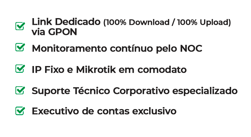 Com o NetDedicado, sua empresa terá acesso a uma rede de alta velocidade e segurança,conectada via fibra óptica à NETCENTER. Essa solução proporciona desempenho superior e estabilidade, ideal para empresas que exigem execelência na conectividade